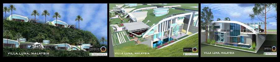 Villa Luna houses will be built at Lunaville, a unique space themed property development in Malaysia near Spaceport Malaysia, planned to be a center of space commercialization activities, particularly space tourism and research spaceflights. There will be a spaceflight terminal, a shopping mall, a space themed park, a space education & research center, a health & medical center and a convention center at the spaceport. Lunaville will be a highly secured gated community and a zero emission zone, where only electric vehicles will be allowed to be operational. The space commercialization activities, guaranteed security and the advantage of clean air & environment will create a neighborhood consists of space commercialization operators, management professionals, scientists and engineers, and some of them may reside at Lunaville with their family.
